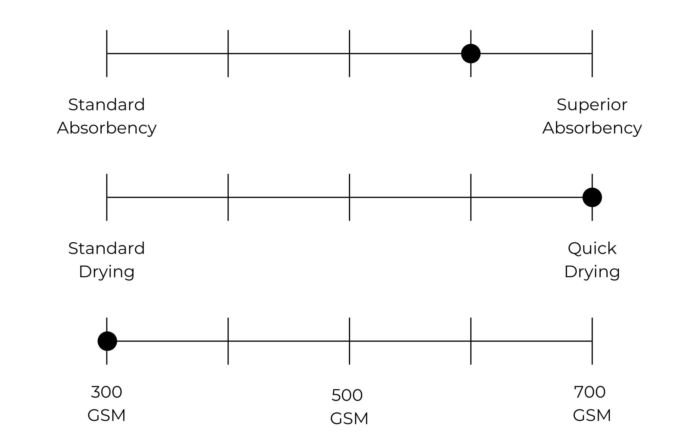 - 285 GSM - the perfect amount for a substantial towel that still saves space